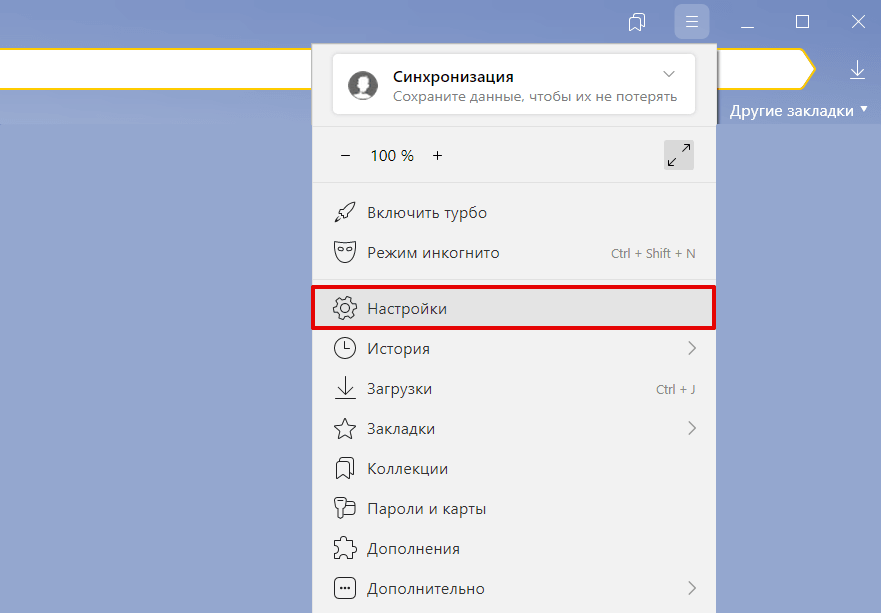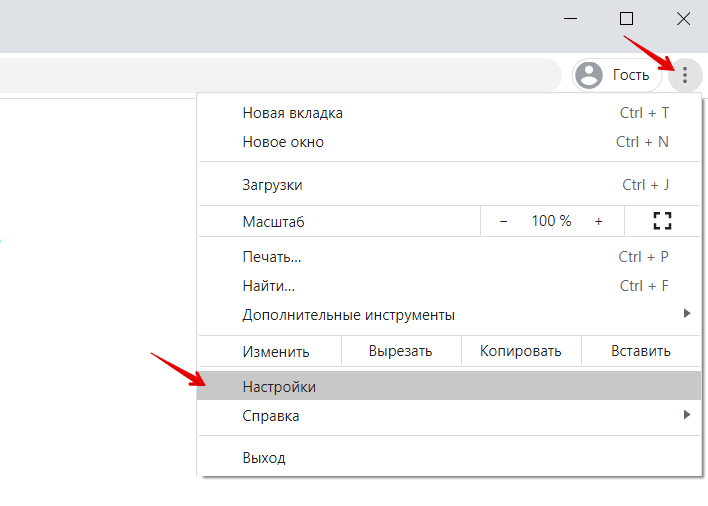 - В браузере нажмите в правом верхнем углу на кнопку с тремя точками. Затем кликните Настройки